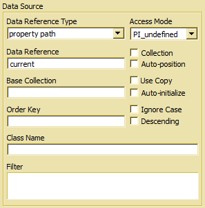 - Base Collection - is a data source name or access path for a superset of the data source. This is required for drop lists, but might be also used for lists or other controls in order to define a superset from which instances can be assigned to the current data source. By default, it is the superset defined in the database model (if there is any).