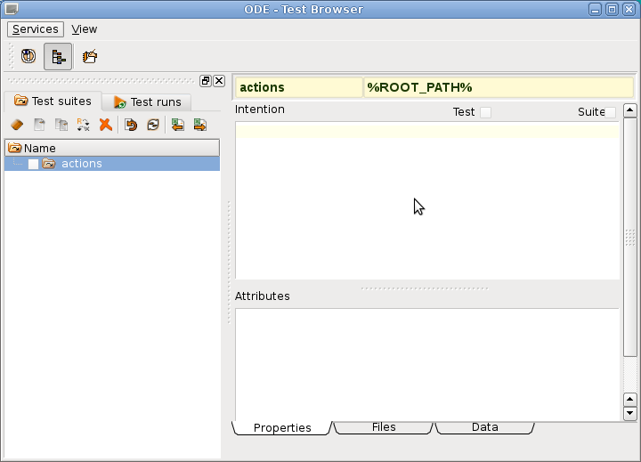 In order to create a new test suite, one may use the action buttons above the directory tree. After creating test suites and test cases, one may create a test run by selecting any number of test cases or suites from the directory tree (action buttons above the directory tree). In order to execute a test run, the Test runs tab above the directory tree has to be selected. The following sections will explain these steps more detailed.