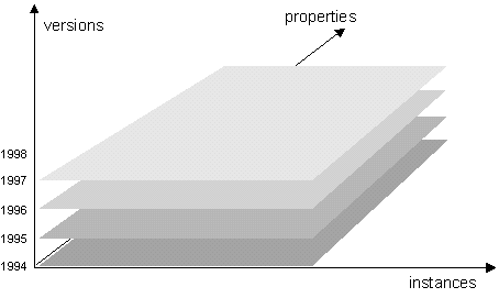 The version concept describes the way, how to maintain several versions for an object instance in order to reflect states for an instance over time. This also includes version support for relationships and collections, which means in general storing versions for database entries. Usually (but not necessarily), a version is associated with a time point or interval, i.e. it reflects the state of an instance or collection at a certain time (interval). Version support enables a system to represent previous (historical) states of an object instance or a collection.