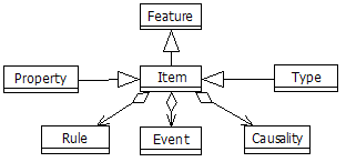 Each item consists of a number of features, which describe the details of the item. The item defines what a concept has, how it behaves and how it reacts. The concept of an item is provided as textual definition that defines what the item is about, it's meaning.