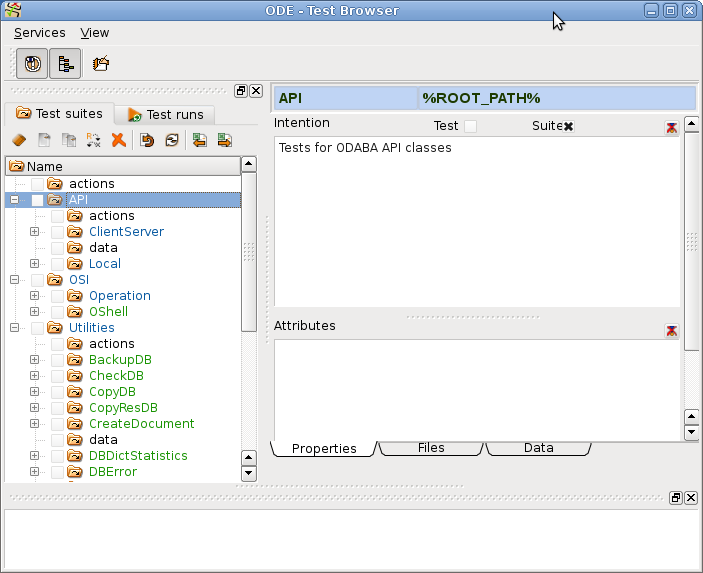 In order to verify the ODABA installation, one may download the file ODABATest (.zip or .tar.bz2), which contains TestBrowser resource database as well as test suites for running different kind of ODABA test cases (unit and component tests for local and client/server environment).