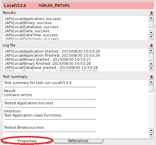 Test run Properties view