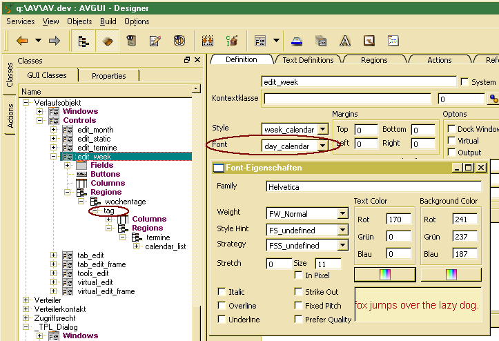 In a similar way, static or dynamic fonts may be set for displaying events. By assigning a font to the event region control, a static event font may be defined. Dynamic event fonts may be set in the doBeforeDataSet() handler e.g. depending on the event type.