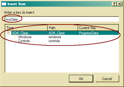 Make sure, that the object type ADK_Class has been selected in the tree insert dialog.