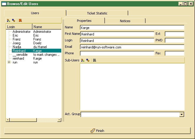 The notice tab shows the list of all notices assigned to the user as notice creator, receiver or processor. Ticket statistics is mainly intended as a useful demonstration of the plot user control. Statistics work properly, when the required JAVA library for Jgplot has been installed properly.