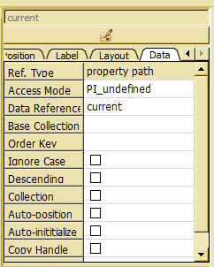 Data source definitions might be defined in a similar form by activating the Properties tab below the work area andselecting the field in the Designer's class tree below the control to be designed. Here, filter conditions and data formatting can be defined in addition. The data source definition form consists of two parts: