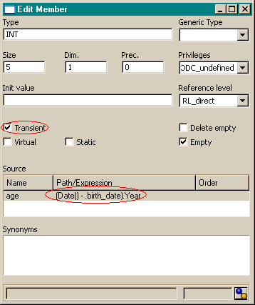 When not defining a source for the attribute, the value for the transient attribute must be evaluated by the application (e.g. in the DBRead() handler of a context class for database structure).
