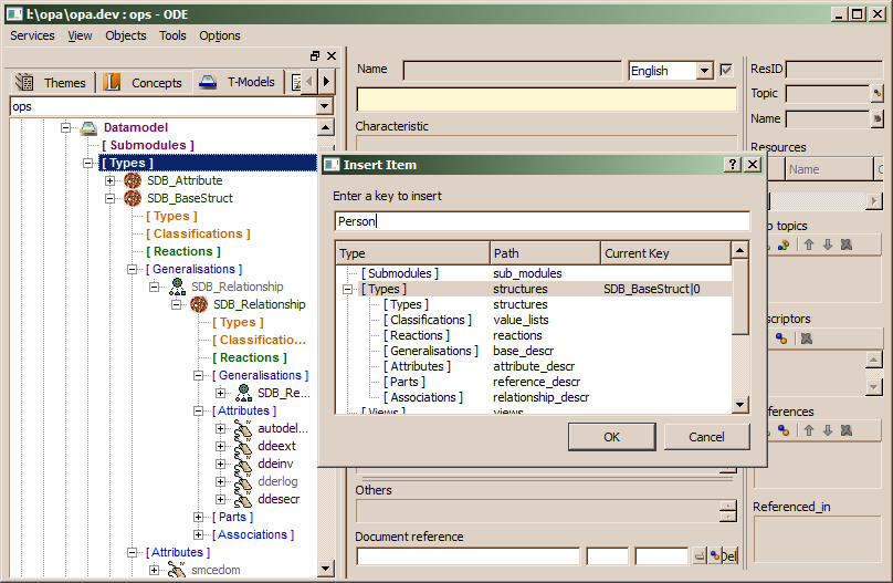 Terminology object types are usually concepts, which require a more detailed definition. Types can be created for each terminology model or module. In order to create a type you click on the Type item below the required model or module and select Insert.